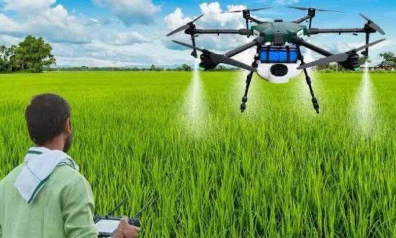 240 रुपये में एक एकड़ में ड्रोन से फसलों पर छिड़काव