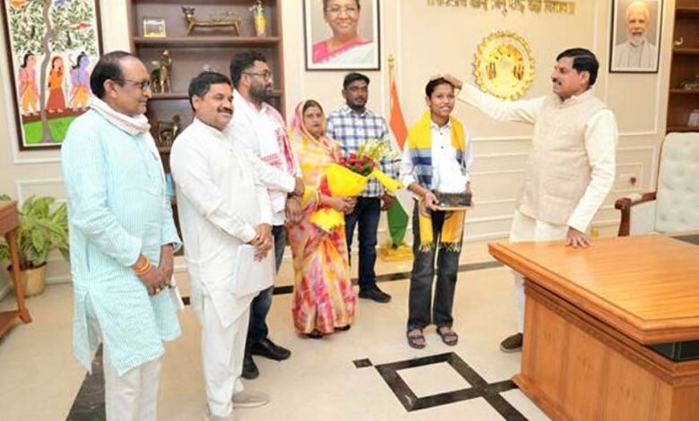 मुख्यमंत्री डॉ. यादव ने प्रतिभा को आशीर्वाद देते हुए कहा कि 'प्रतिभा जैसी बेटियां प्रदेश की शान हैं। प्रतिभा की सफलता लाखों बेटियों और अन्य विद्यार्थियों के लिए प्रेरणा है। बिटिया की उपलब्धि पर पूरे प्रदेश को गर्व है।' मुख्यमंत्री डॉ. यादव का कु. प्रतिभा और उनके परिजन ने पुष्प-गुच्छ भेंट कर अभिवादन किया।