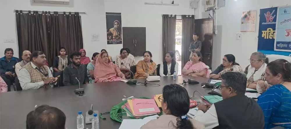 छत्तीसगढ़ राज्य महिला आयोग की अध्यक्ष डॉ. किरणमयी नायक की अध्यक्षता में आज प्रेरणा सभा कक्ष, बालगृह परिसर महिला एवं बाल विकास कार्यालय, दुर्ग में महिला उत्पीड़न से संबंधित मामलों पर जनसुनवाई आयोजित की गई। इस अवसर पर प्रभारी सदस्य ओजस्वी मंडावी और सह प्रभारी लक्ष्मी वर्मा उपस्थित रहीं।