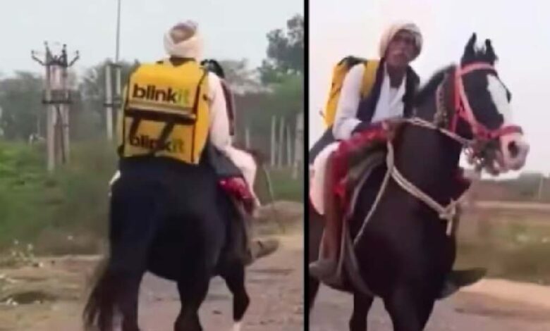 ‘रॉयल डिलीवरी’ का नया वीडियो, Blinkit वाले अंकल घोड़े पर सवार होकर पहुंचाते दिखे ऑर्डर