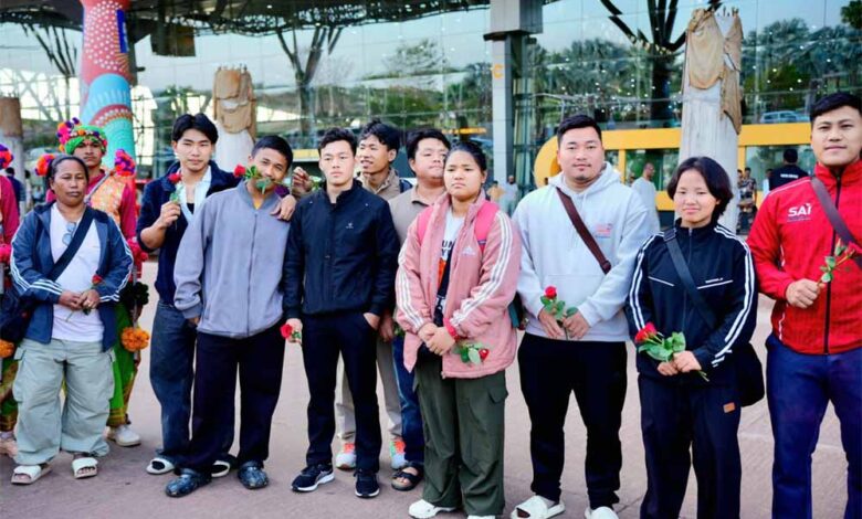 अरुणाचल के वेटलिफ्टरों का विमानतल पर रंगारंग स्वागत