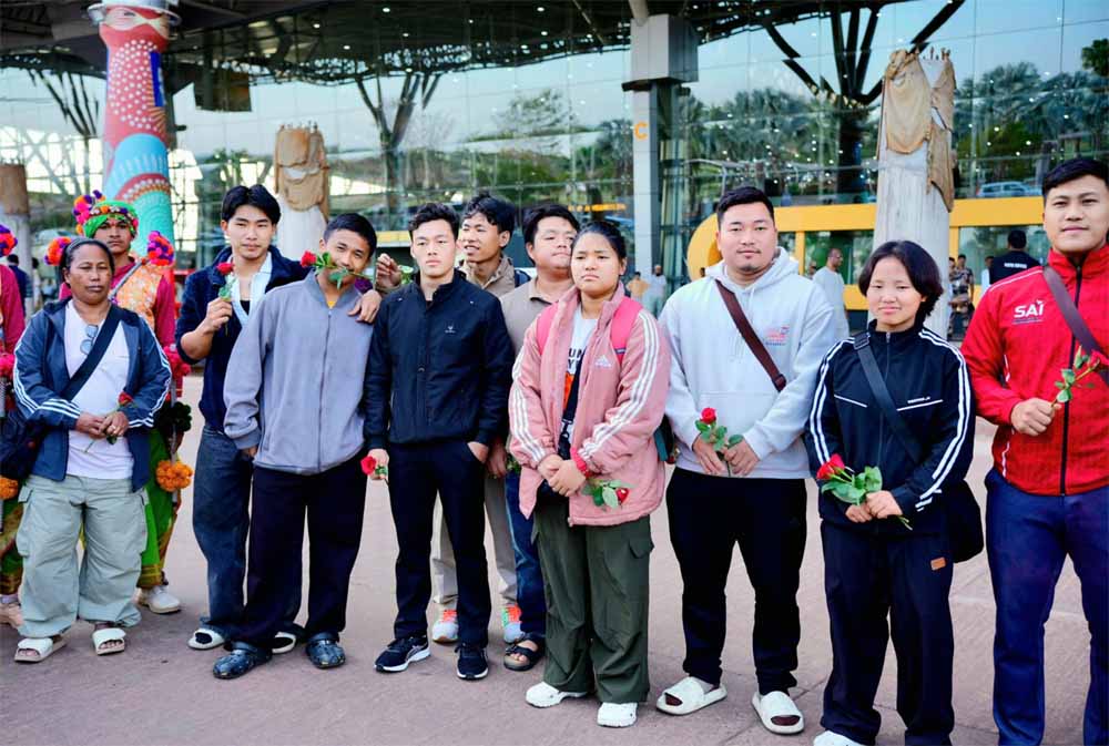 अरुणाचल के वेटलिफ्टरों का विमानतल पर रंगारंग स्वागत