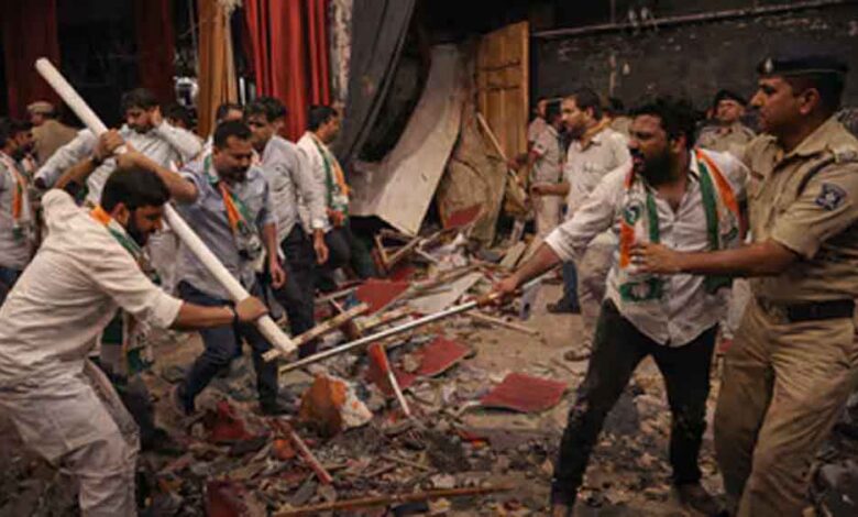 राजकोट में बड़ा विवाद खड़ा हो गया। यहां गुजराती नाटक 'मैं नाथूराम' के मंचन से पहले कांग्रेस कार्यकर्ताओं ने विरोध किया और हॉल में तोड़फोड़ कर दी। इस घटना के बाद पुलिस ने करीब 45 कांग्रेस कार्यकर्ताओं को हिरासत में लिया है। घटना शहर के हेमू गढ़वी हॉल में हुई, जहां रात 9:15 बजे नाटक का मंचन होना था।
