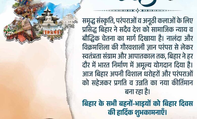 बिहार दिवस के अवसर पर प्रधानमंत्री नरेन्द्र मोदी एवं केंद्रीय गृह मंत्री अमित शाह ने रविवार को इंटरनेट मीडिया प्लेटफॉर्म ‘एक्स’ पर दी गई शुभकामनाएं राजनीतिक रूप से भी कई संकेत छोड़ गई हैं। अपने संदेश में प्रधानमंत्री मोदी ने बिहार की समृद्ध सांस्कृतिक विरासत, परंपराओं और ऐतिहासिक गौरव को रेखांकित करते हुए इसे देश के लिए मार्गदर्शक बताया। मोदी एक्स पर बिहार दिवस के अवसर पर राज्य के अपने सभी परिवारजनों को अनेकानेक शुभकामनाएं दीं।