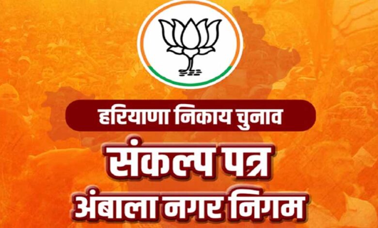 भाजपा ने हरियाणा निकाय चुनाव के तहत अंबाला नगर निगम के लिए अपना 'संकल्प पत्र' जारी कर दिया है। 'समर्पित सेवा-सशक्त सुशासन' के ध्येय के साथ पार्टी ने शहर के सर्वांगीण विकास, महिला सुरक्षा और आधुनिक बुनियादी सुविधाओं को अपनी प्राथमिकता बताया है।