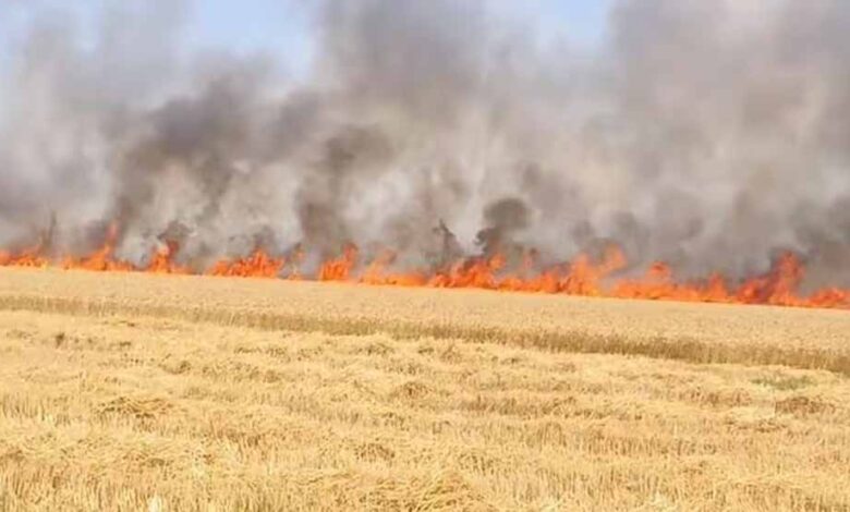 खलिहान में रखे गेहूं में अचानक लगी आग