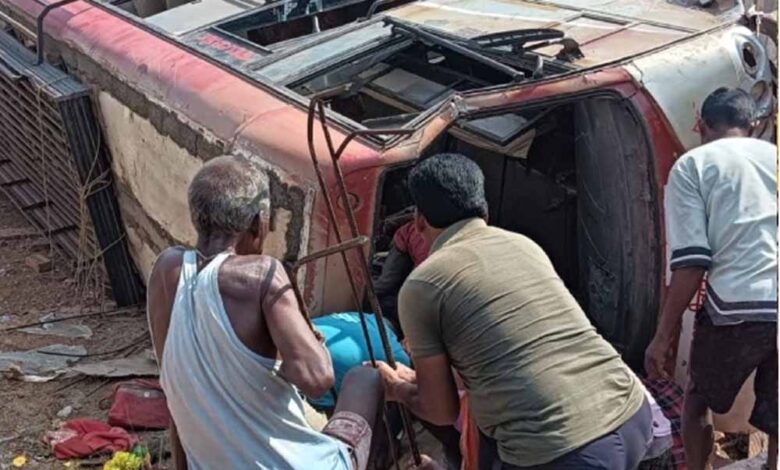 जशपुर जिले के तपकरा थाना क्षेत्र में शुक्रवार सुबह तेज रफ्तार यात्री बस अनियंत्रित होकर सड़क किनारे निर्माणाधीन मकान में घुसते हुए गड्ढे में पलट गई। इस दर्दनाक हादसे में पांच यात्रियों की मौके पर ही मौत हो गई, जबकि 20 यात्री घायल हो गए। घायलों में तीन की हालत गंभीर बताई जा रही है, जिन्हें बेहतर उपचार के लिए अंबिकापुर मेडिकल कॉलेज रेफर किया गया है।