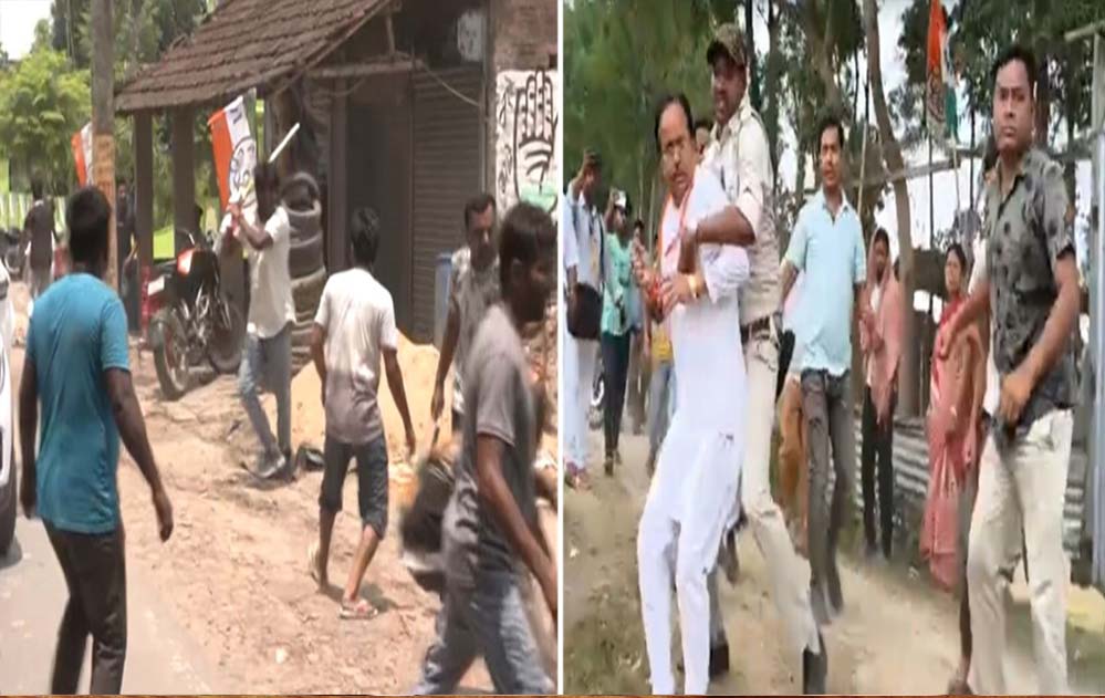 दक्षिण दिनाजपुर के कुमारगंज (Kumarganj) विधानसभा क्षेत्र से एक बेहद विचलित करने वाली घटना सामने आई है. यहाँ के भाजपा उम्मीदवार सुवेंदु सरकार पर कथित तौर पर तृणमूल कांग्रेस (TMC) के समर्थकों ने हमला कर दिया. बताया जा रहा है कि सुवेंदु सरकार को सूचना मिली थी कि एक विशेष बूथ पर 'बूथ जैमिंग' की जा रही है. जब वे अपनी टीम के साथ वहां पहुंचे, तो उन पर लाठियों और घूंसों से हमला किया गया. सुवेंदु सरकार ने आरोप लगाया कि पुलिस की मौजूदगी में टीएमसी के गुंडों ने उन्हें पीटा।