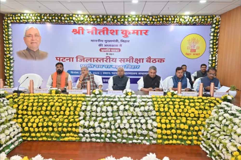 मुख्यमंत्री नीतीश कुमार ने आज प्रगति यात्रा के क्रम में पटना जिले में चल रही विकासात्मक योजनाओं के संबंध में पटना समाहरणालय सभागार में समीक्षात्मक बैठक की। समीक्षात्मक बैठक में पटना जिले के जिलाधिकारी डॉ0 चंद्रशेखर सिंह ने पटना जिले के विकास कार्यों का प्रस्तुतीकरण के माध्यम से विस्तृत जानकारी दी।