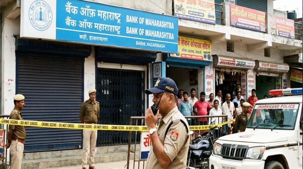 झारखंड के हजारीबाग जिले में बैंक डकैती की सनसनीखेज घटना सामने आई है. बरही थाना क्षेत्र में हजारीबाग रोड स्थित बैंक ऑफ महाराष्ट्र में चार नकाबपोश बदमाश हथियार लेकर घुसे और बड़ी लूट को अंजाम दिया. बदमाश महज 10 मिनट के भीतर करीब 7 करोड़ रुपये का सोना और लगभग 5 लाख रुपये नकद लेकर फरार हो गए।