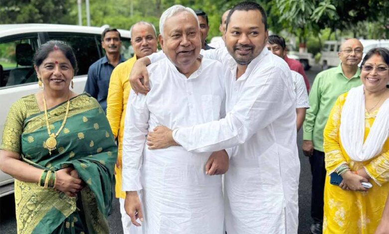 बिहार सीएम नीतीश कुमार के बेटे निशांत कुमार ऐक्शन में आ गए हैं। पहली बार वे जदयू के बड़े नेताओं की बैठक में नजर आए। यह बैठक राज्यसभा सांसद और जदयू के कार्यकारी राष्ट्रीय अध्यक्ष संजय झा के घर पर बुलाई गई थी जिसमें मंत्री, सांसद और विधायक शामिल हुए। निशांत ने पार्टी नेताओं के साथ खुलकर बात की।