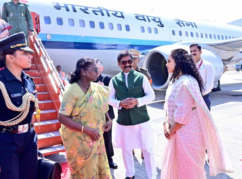 राष्ट्रपति द्रौपदी मुर्मु शुक्रवार को अपने निर्धारित दौरे पर झारखंड की राजधानी रांची पहुंचीं। उनका स्वागत बिरसा मुंडा एयरपोर्ट पर भव्य तरीके से किया गया। राज्यपाल संतोष गंगवार और मुख्यमंत्री हेमंत सोरेन भी एयरपोर्ट पर मौजूद रहे।