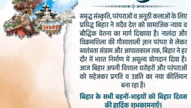 पटना. बिहार दिवस के अवसर पर प्रधानमंत्री नरेन्द्र मोदी एवं केंद्रीय गृह मंत्री अमित शाह ने रविवार को इंटरनेट मीडिया…