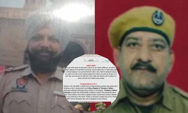 गांव आदियां में थाना दोरांगला के तहत चेक पोस्ट पर दो पुलिसकर्मियों की संदिग्ध रूप से गोली लगने से मौत के मामले में तहरीक-ए-तालिबान हिंदुस्तान ने घटना की जिम्मेदारी ली है। सोशल मीडिया पर वायरल पोस्ट में लिखा गया है कि आज 22 फरवरी 2026 को तड़के गजवा-ए-हिंद में एक और सफलता हासिल हुई, जब तहरीक-ए-तालिबान हिंदुस्तान के अल-बुर्क ब्रिगेड ने गुरदासपुर के दुरंगला पुलिस स्टेशन पर हमला किया।
