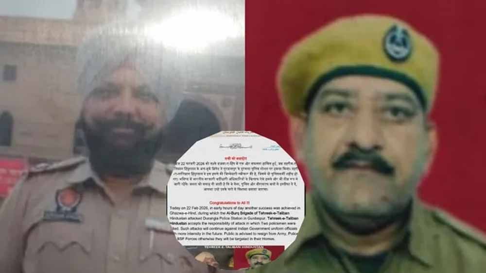 गांव आदियां में थाना दोरांगला के तहत चेक पोस्ट पर दो पुलिसकर्मियों की संदिग्ध रूप से गोली लगने से मौत के मामले में तहरीक-ए-तालिबान हिंदुस्तान ने घटना की जिम्मेदारी ली है। सोशल मीडिया पर वायरल पोस्ट में लिखा गया है कि आज 22 फरवरी 2026 को तड़के गजवा-ए-हिंद में एक और सफलता हासिल हुई, जब तहरीक-ए-तालिबान हिंदुस्तान के अल-बुर्क ब्रिगेड ने गुरदासपुर के दुरंगला पुलिस स्टेशन पर हमला किया।