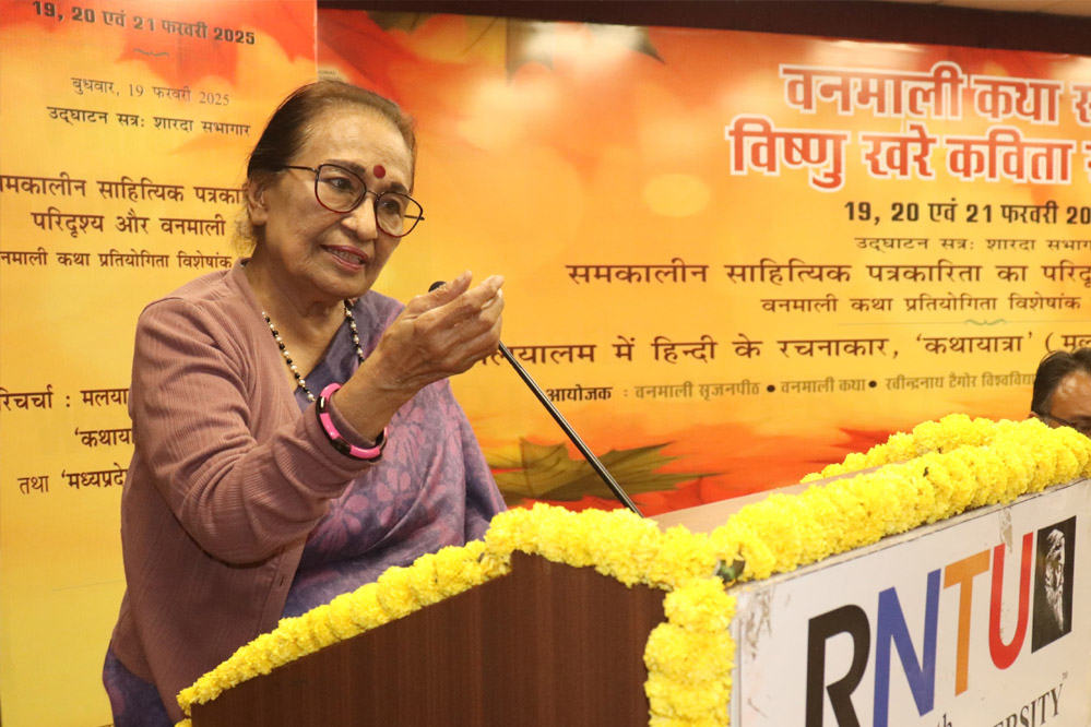 कला, साहित्य एवं संस्कृति के लिये समर्पित वनमाली सृजनपीठ द्वारा तीन दिवसीय वनमाली कथा समय एवं राष्ट्रीय विष्णु खरे कविता सम्मान समारोह का भव्य शुभारंभ रबीन्द्रनाथ टैगोर विश्वविद्यालय में बुधवार को हुआ। समारोह के पहले सत्र में वरिष्ठ कहानीकार ममता कालिया, वनमाली कथा पत्रिका के प्रधान सम्पादक मुकेश वर्मा, तद्भव पत्रिका के सम्पादक अखिलेश, कहानीकार ओमा शर्मा ने 'समकालीन साहित्यिक पत्रकारिता का परिदृश्य और वनमाली कथा' विषय पर सत्र में अपने वक्तव्य प्रस्तुत किये।