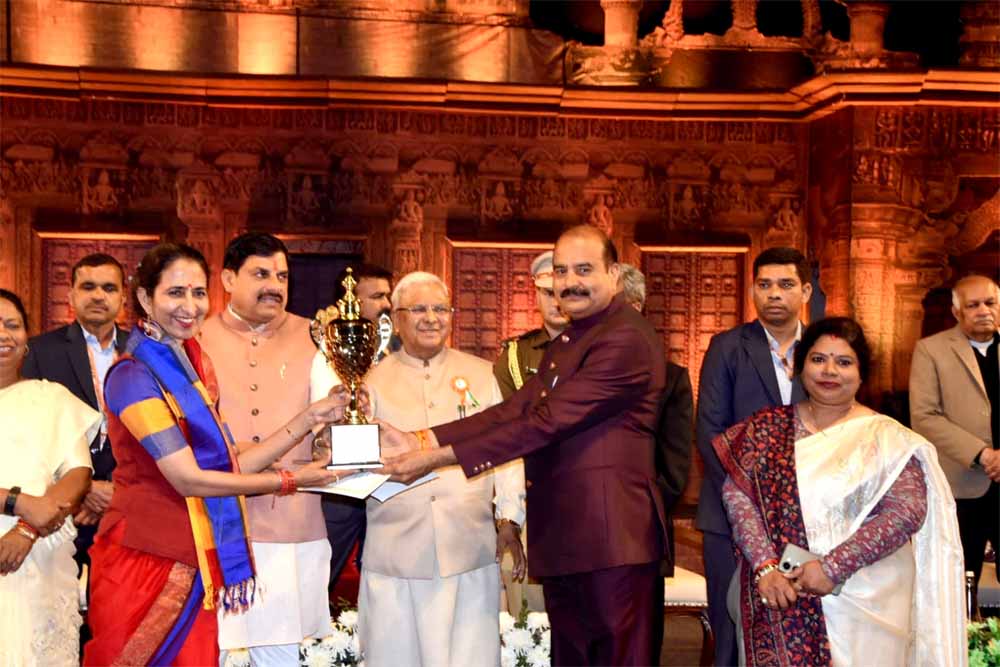 राज्यपाल श्री मंगुभाई पटेल एवं मुख्यमंत्री डॉ. मोहन यादव द्वारा रविंद्र भवन में आयोजित लोकरंग कार्यक्रम के दौरान, गणतंत्र दिवस के अवसर पर भोपाल के लाल परेड मैदान में आयोजित राज्य स्तरीय समारोह में उच्च शिक्षा विभाग द्वारा प्रस्तुत "शोध एवं अनुसंधान, समृद्ध मध्यप्रदेश की पहचान" थीम पर आकर्षक झांकी को द्वितीय स्थान मिलने पर सम्मानित किया गया।