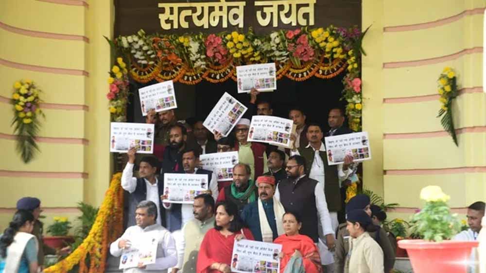 बिहार विधानसभा के बजट सत्र के दूसरे दिन नीट छात्रा की मौत के मामले को लेकर विपक्ष ने सरकार के खिलाफ जोरदार प्रदर्शन किया। विधानसभा पोर्टिको में राजद, कांग्रेस और वाम दलों के सदस्यों ने पोस्टर लहराते हुए नारेबाजी की और सरकार से इस गंभीर मामले पर चुप्पी तोड़ने की मांग की।