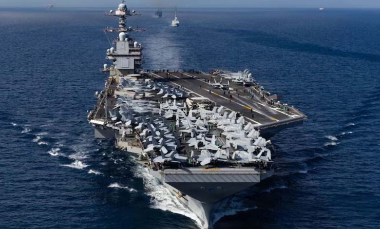 USS गेराल्ड आर. फोर्ड की तैनाती: यह दुनिया का सबसे बड़ा और सबसे आधुनिक एयरक्राफ्ट कैरियर है. इसमें 100 से ज्यादा लड़ाकू विमान, हजारों सैनिक और एस्कॉर्ट जहाज होते हैं.
