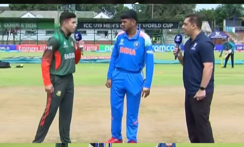 आईसीसी पुरुष अंडर-19 वर्ल्ड कप 2026 में भारत और बांग्लादेश के बीच शनिवार (17 जनवरी) को खेला गया मुकाबला काफी सुर्खियों में रहा है. बुलावायो के क्वींस स्पोर्ट्स क्लब में हुए इस मैच में टॉस के दौरान भारतीय कप्तान आयुष म्हात्रे ने बांग्लादेश के स्टैंड-इन कप्तान जवाद अबरार से हाथ मिलाने से परहेज किया.